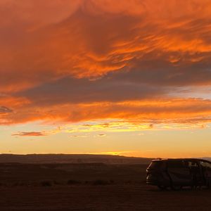 念願かなってツアーに参加させていただきましたが、一言で言い表せないくらいに広大な地帯で、地球の歴史を半分だけ見たような、壮大な気持ちになりました。ザイオンから始まりブライスキャニオン、エスカランテ国立公園と続いた1日目。特にエスカランテ国立公園で簡単なトレッキングをしたことがすごく印象に残りました。ガイドさんの楽しい豆知識も最高でした。1日目のホテルからの夕日も最高でしたし、途中途中のガソリンスタンドが楽しすぎました。