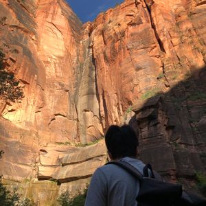 ザイオンに着いた朝方はとても寒く、薄いダウンジャケットでも寒いくらいでした。昼間にはだいぶ暖かくなりましたが、それでも寒がりの私は常にダウンジャケットを常に持つか、羽織っているような気温でした。