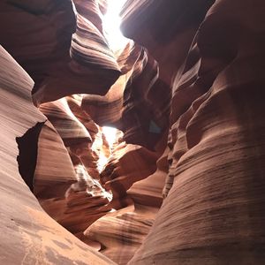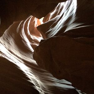 生憎の悪天候でしたがアンテロープキャニオンでは奇跡的に雨が止み、ローワーキャニオンの予定を急遽アッパーキャニオンに変更し見学することが出来ました。柔らかな茶色と曲線に光が差し込み織りなされる光景には思わず表情がほころびます。ナバホ族のガイドさんがいくつもの写真スポットを教えてくれたおかげで美しい思い出を残すことが出来ました。