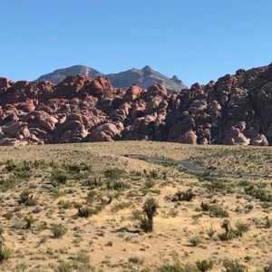 レッドロックキャニオンは、砂漠の中にある赤い岩山が特徴的な州立公園です。ラスベガスから車で西へ約30分の所にあり、市内から一番近い自然の観光地です。またレッドロックキャニオンにあるシーニック・ループ・ドライブは、一周約20キロメートルの絶景を眺められる世界屈指のドライブコースになっています。毎年多くの観光客がドライブやトレッキングのために訪れています。