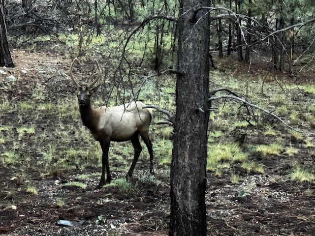 グランドキャニオンでは、乗車中エルクに遭遇しガイドさんから「こうして、ゆっくり歩くエルクは珍しくて滅多に見れないんですよ」とお聞きしました。幸運に感謝です。