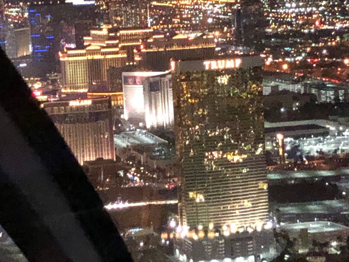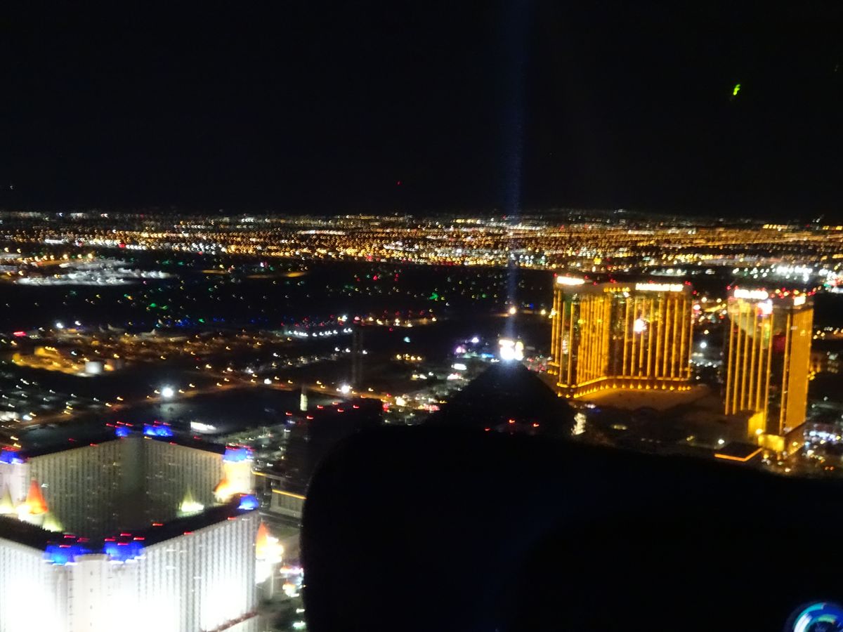 上空から見るラスベガスの夜景は、また違った趣きがあって見惚れている間にあっという間に時間が過ぎてしまいました。トランプ、ベネチアン、ニューヨークニューヨークなどの豪華ホテルを上空から見るのは格別でした。