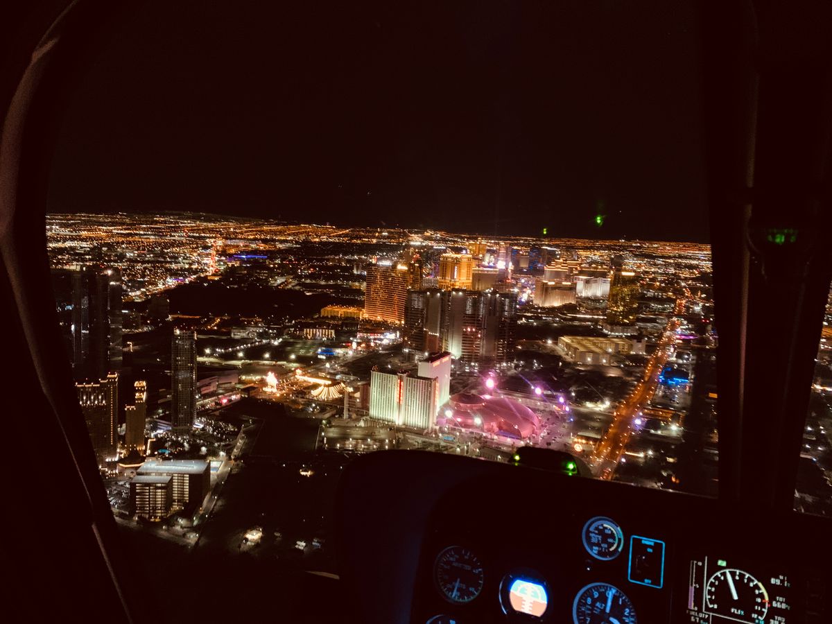 ヘリコプターから観る夜景はとても綺麗です。東京やニューヨークは同じような景色かもしれませんが、ラスベガスはまた違った景色なのでおすすめです。15分くらいであっという間だったのと座る席によって見え方がだいぶ違うと思います。私は一人参加でパイロットの横だったのでベストなロケーションでした。後方の席の方は少し見えづらいと思います。席は乗るときに決められていて言われた席に座るという感じでした。