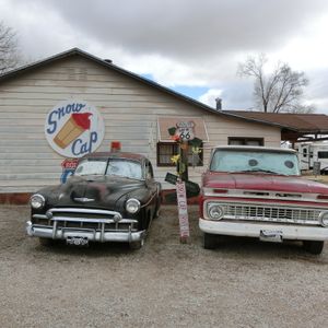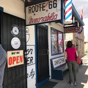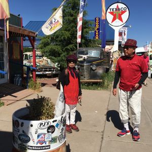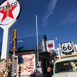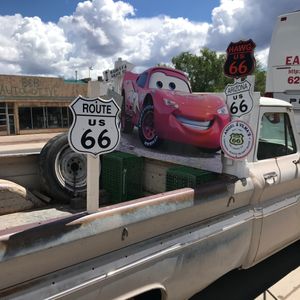 向かう途中、映画カーズの舞台にもある「ルート66」での観光もありました。有名人の写真があったり、カーズのパネルと記念写真を撮りました。レトロな風景が見られます。