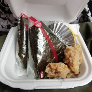 車に戻ると、ランチボックス(おにぎり2個&から揚げ&漬物)配布。