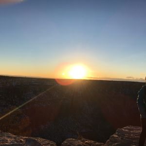 20歳になった娘と一緒に旅行したいと思ったところ、たまたま休日が重なった先輩にラスベガス旅行に誘われ3人旅となりました。カジノのイメージが強かったラスベガスでしたが、グランドキャニオンの体験談を聞いて、是非グランドキャニオンに行ってみたいと思いこのツアーに参加しました。行って良かった!と心から思います。強風により、とても寒かったですが、天気は良く、長距離のバス移動も壮大な景色を見ていたら、全く苦になりませんでした。昼食用にテイクアウトしたセリグマンのハンバーガーも美味しいかったです。おみやげ店もかわいいものばかりで、時間が短く感じました。夕日鑑賞ツアーなので、日没時間によって変わるようですが、今回(2月)は、朝の集合8:30、到着21:30と時間設定も無理なく充実してました。飛行機やヘリコプターのツアーも検討しましたが、強風だと飛ばないこともあるようなので、バスツアーにして大正解でした。