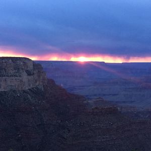 夕陽に照らされ真っ赤に燃えるように染まっていくグランドキャニオン、そして夕陽の沈む瞬間、夕陽が沈んだ後は淡いオレンジから薄紫色のグラデーションの偉大な大地が静かに眠りに着くような光景…全ての瞬間が神々しくて、ただただ感動してました。