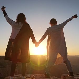 風もなく小春日和のようないいお天気で 寒いと思っていたグランドキャニオンでしたが夕日も綺麗いに見れて感動しました。往復1000kmと聞くと引いてしまいますが車中では寝れて思ったほど疲れませんでした。ガイドさんの楽しい話や露出を合わせて写真を撮ってくれたりといい思い出になりました。夕日鑑賞ではゆっくり時間がありおにぎりが格別美味しかったです。