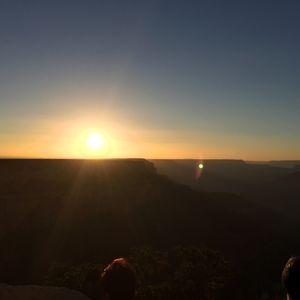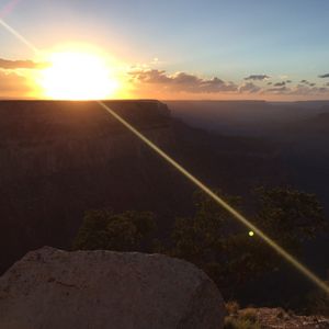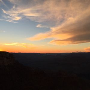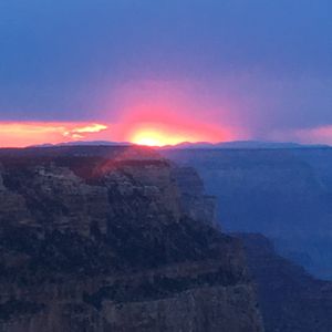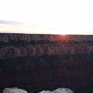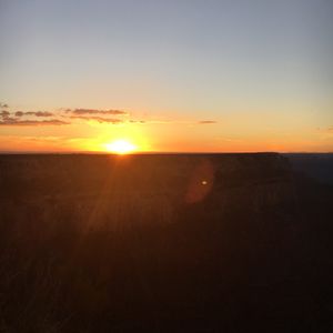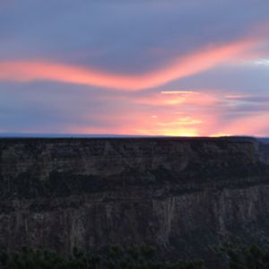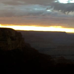 夕陽は沈む直前に雲に邪魔されてしまいましたが、夕陽が沈みかけているときの空の色やグランドキャニオンに映る光りも幻想的でした。
