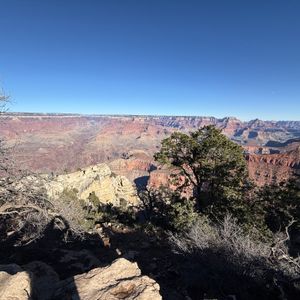 まず、本当に絶景です。ありきたりな表現ですが、スケールが違います。でかすぎて1枚の絵画のように見えますが、だんだんと谷底の川や下方のトレッキングコース、自分のすぐ横の崖の切り立ち方に「もしかして奥行きがある…?」と気づいてから慄きます。地球に思いを馳せる時間が発生するので、到着前に説明してもらえるグランドキャニオンの成り立ちや発見の歴史の話はちゃんと聞くことをおすすめします。