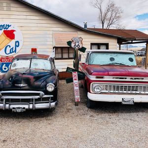 カーズに出てくるキャラクターのように目が書いてある車があったりルート66のマークで写真を撮ったり楽しめました。