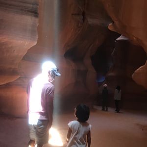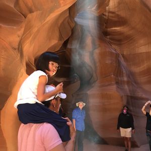 アンテロープキャニオンでは光のビームの時間に入谷できて不思議で美しい自然を体験できました!ガイドさんがアンテロープキャニオンのナバホ族のガイドさんにちゃんと頼んでくださってツアーの同行者全員写真スポットごとに写真を撮ってもらえました!
