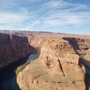 水がエメラルドになっていて馬の蹄のように削れているので迫力がすごかったです。
