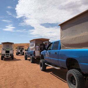 ジープなので砂埃が凄いです。サングラスとマスク又はタオルは必須です!
