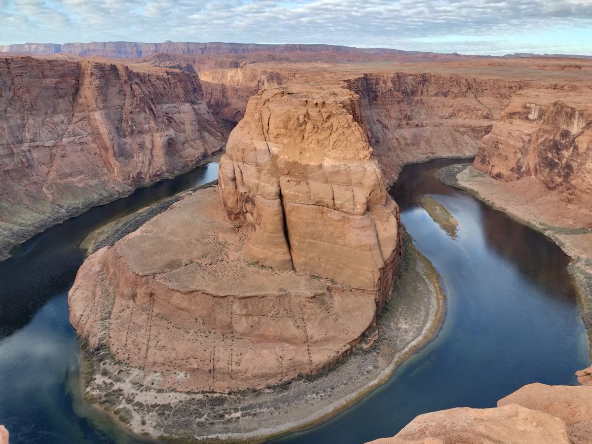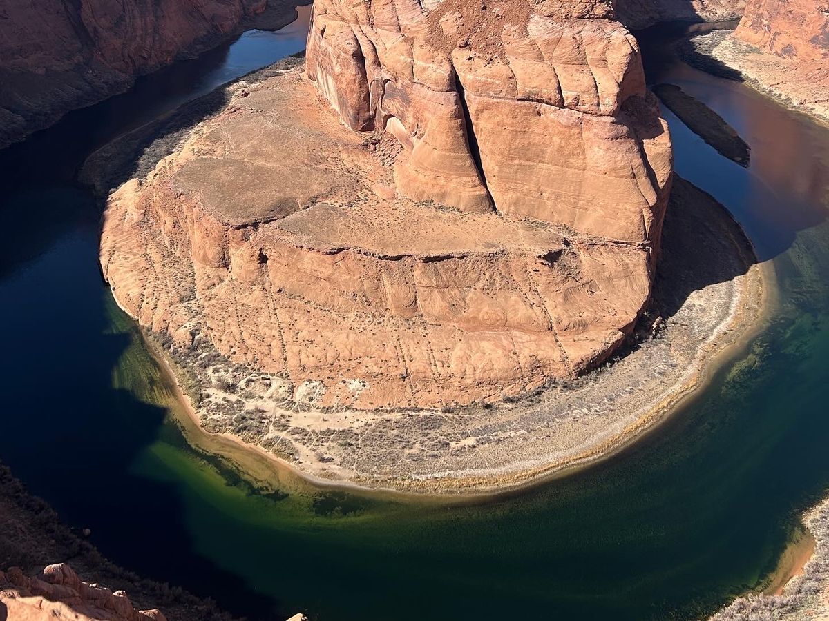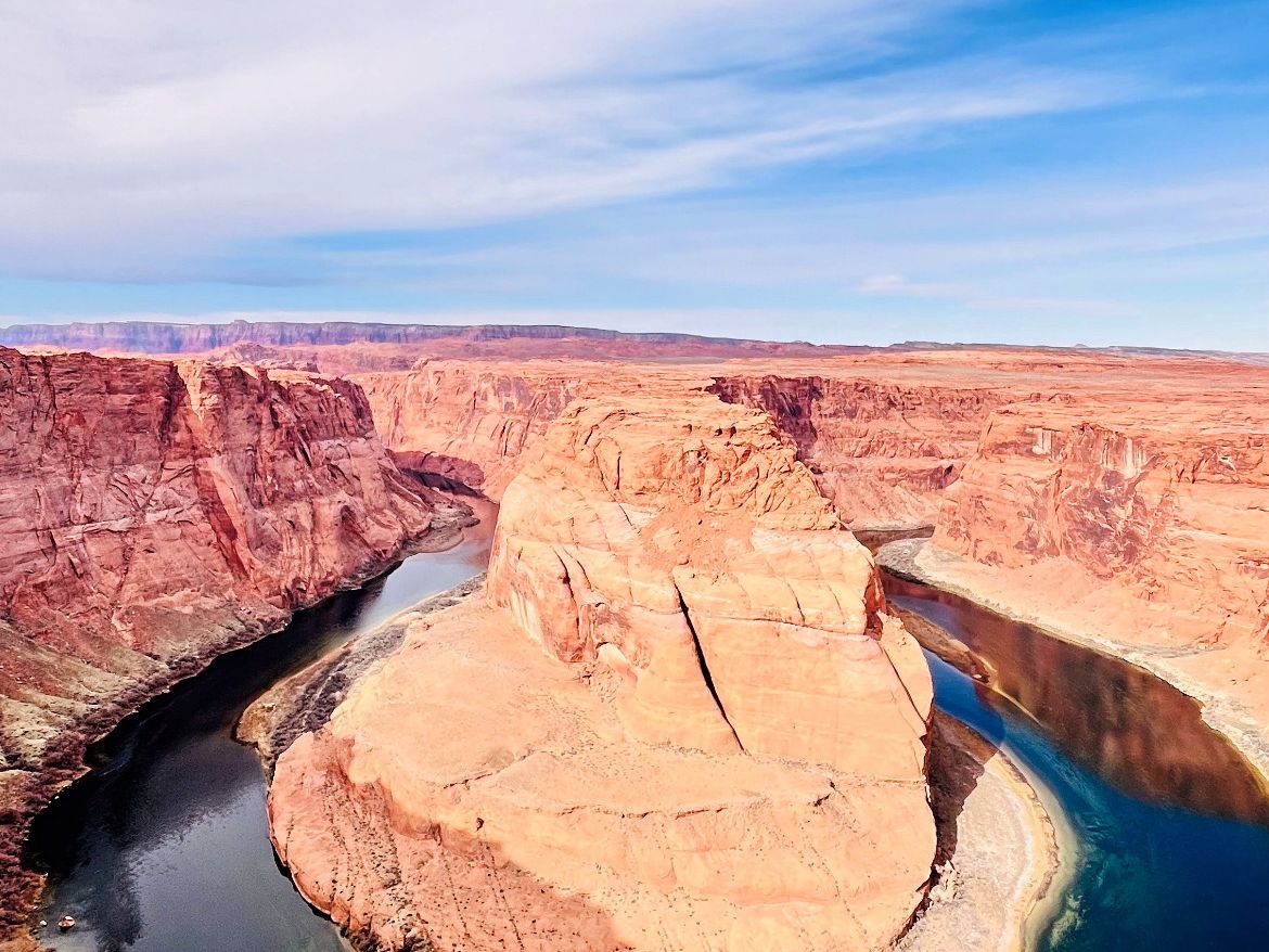 次の目的地ホースシューベンドには約20分で到着。駐車場からフォトスポットまでは片道15分以上歩きますが、コロラド川が描く完璧な馬蹄形のカーブは、その努力に値する絶景でした。