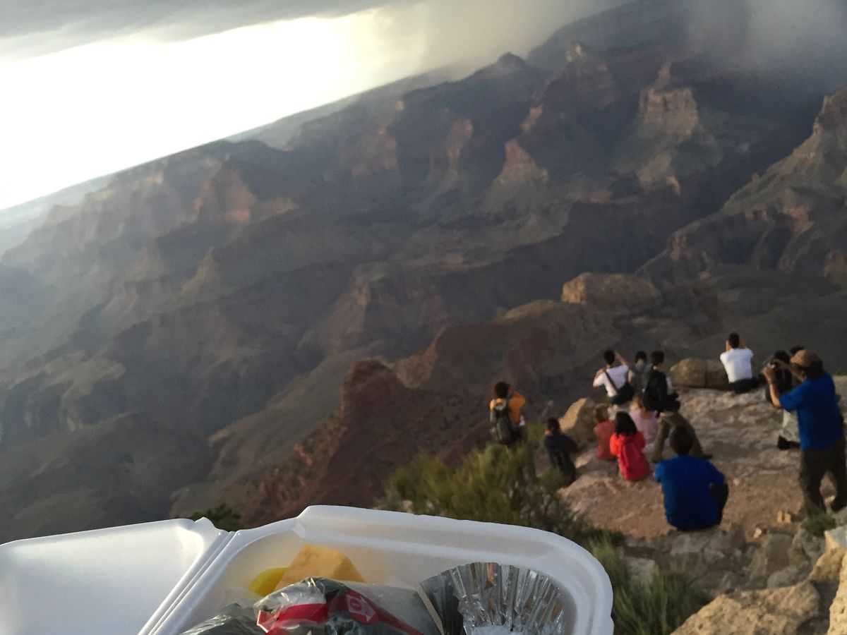 初のグランドキャニオンということで大変期待しておりましたが、残念ながら途中から雷雨になり、あまり夕日鑑賞出来ず…。しかしみんなでダッシュでバスに乗ったのもいい思い出で、あんなに凄い雷はなかなか日本では見られなかったのでそれはそれで良かったのではと満足です。