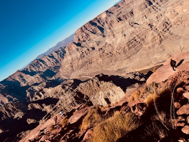 まぁでもどこを見てもとにかく絶景。地層の差も面白く、是非パノラマモードで取るべき場所でしたね。また下を見下ろせば崖を下るラバの姿も見えました。