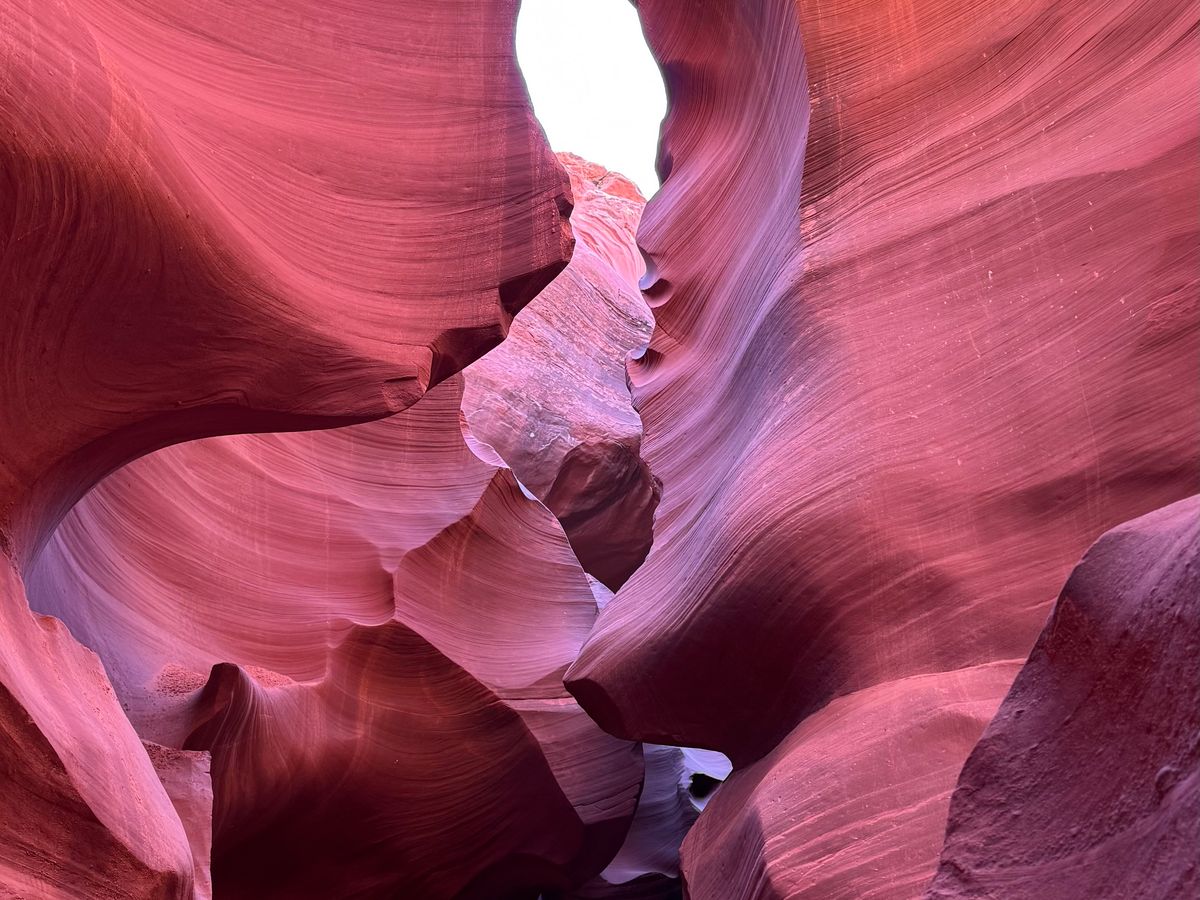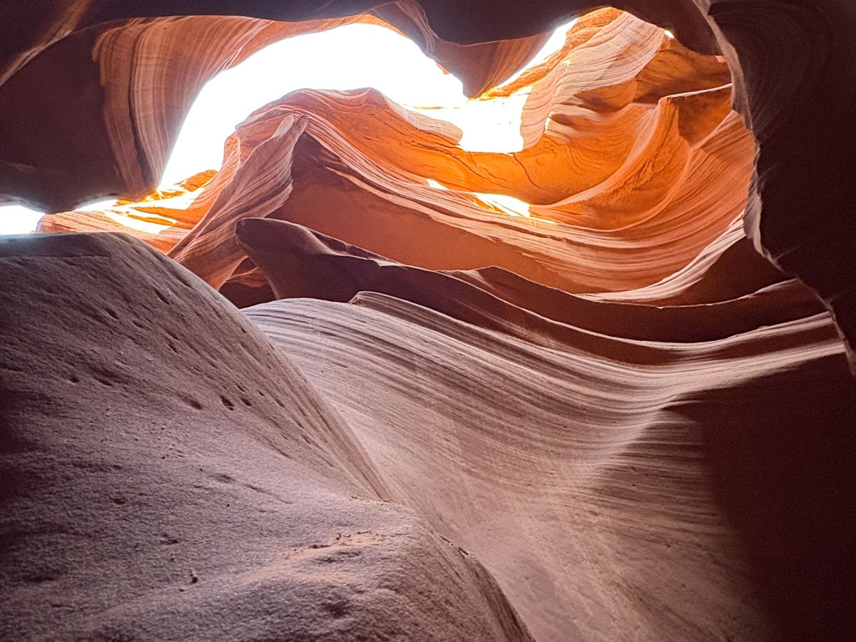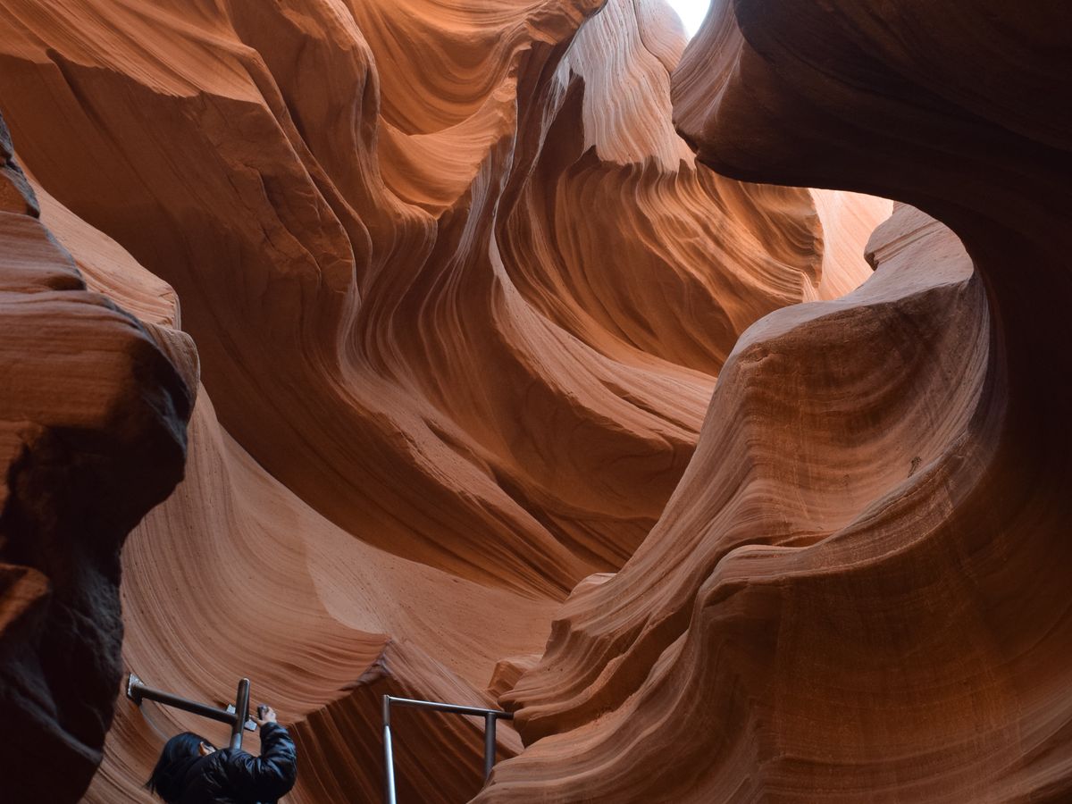 アンテロープ内にはカバン等は持ち込めないので、女性ガイドさんのバンに置いたままで良いか確認したところ、「sure!」と言っていただけ、アンテロープツアー中は貴重品は上着の内に小さなバッグでしのばせた以外はバンに置いておくことができました。ちなみにアンテロープのツアーは現地のナホバ族の方がガイドを務めるので、空港からの女性ガイドさんは車に戻られ、アンテロープツアーが終わるころにまた駐車場に戻っていらっしゃいました。その間、私たちの荷物は女性ガイドさんのバンの中に預けっぱなしです。