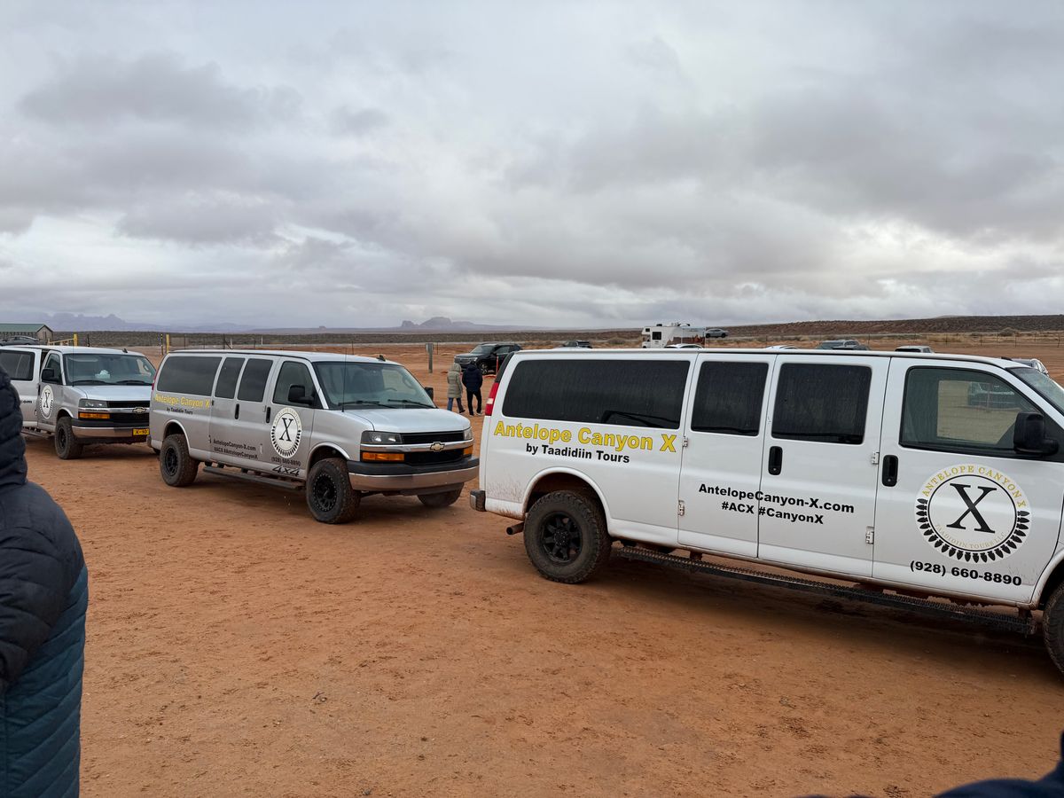 私たちの時は10人乗り(かな?)の大型バンタイプで回りましたが、座り心地よく快適でした。夜中ラスベガス出発の約17時間そのほとんどが車移動なので、観光ポイント以外は時差ボケの影響もありほぼ寝ていました。とはいえ広大なアリゾナの大地を車で走り抜けながら星空、朝日、広い空と雄大な景色を堪能できて睡魔で飛びそうな意識と戦いつつ素晴らしい車窓の景色を楽しめるドライブでした。