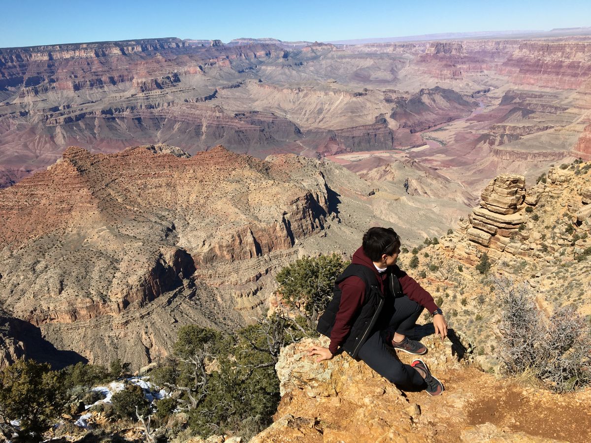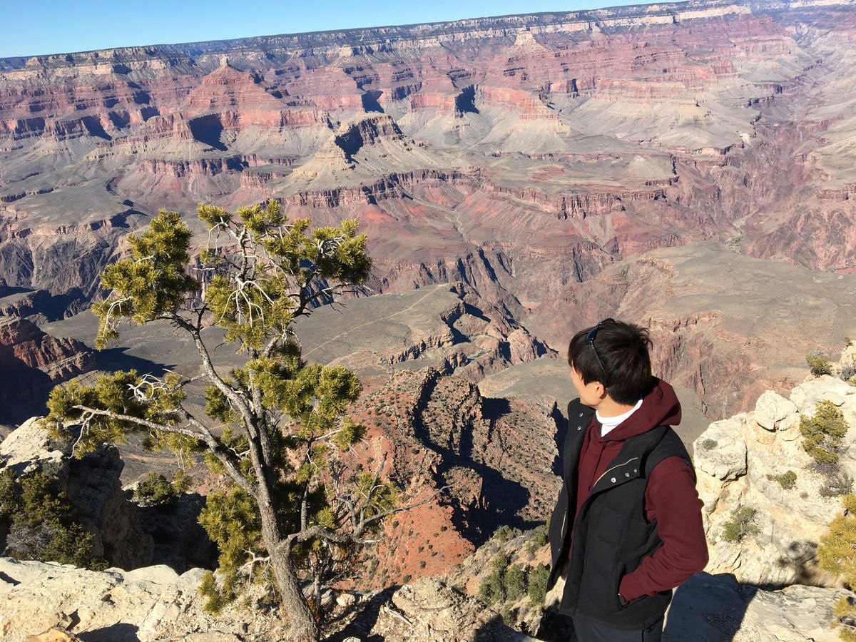いよいよ、グランドキャニオンに着き、どんな景色が私たちを待っているのかと思っていると、それは言葉では表せない壮大で雄大な絶景が待っていました。大自然を目の前にして自分自身の小ささ、自然の雄大さ、地球の歴史を全身で感じました。仲間たちの、グランドキャニオンの大きさに言葉を失い、ただただ見つめるその姿に、このツアーに参加してよかったという気持ちになりました。