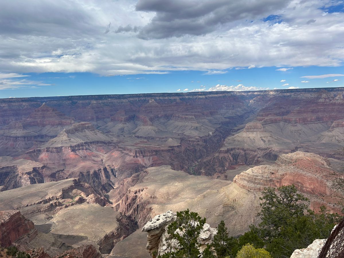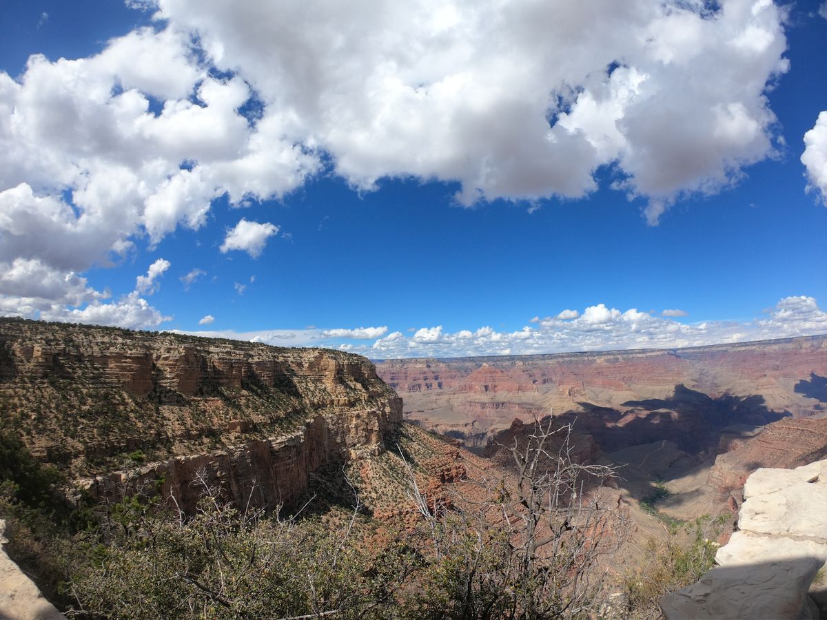 グランドキャニオンに入る直前に傘をさしてもびしょ濡れになるほど雨がザザ降りになってしまい絶望していたのですが、ガイドさんがその日のプランを調整してランチタイムを先にして下さったお陰でその間に雨がやみ、雨に打たれることなく観光することができました!
