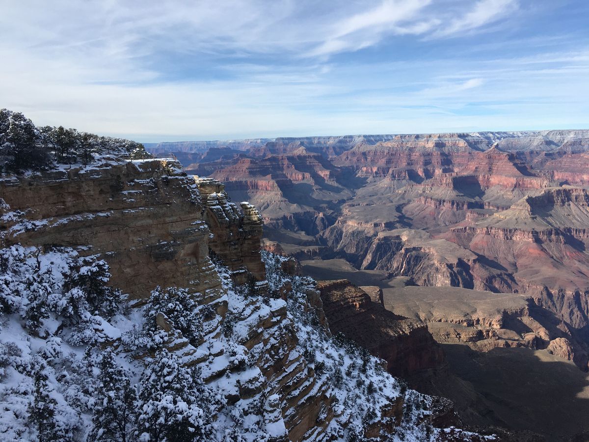 最後に行ったグランドキャニオンは、雪が積もっており、赤土と白い雪のコラボレーションがとても良かったです。冬のグランドキャニオンも最高でした。