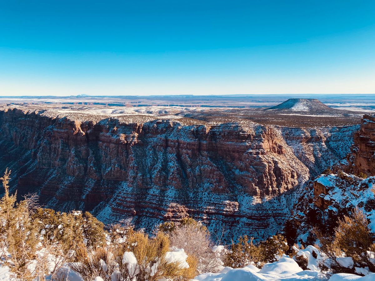 雪の積もったグランドキャニオンはまさに絶景!足下は少し危険ですが、空気も澄んでいて日本では見ることのできない景色を楽しむことができました。マーサーポイントではインスタ等でよく見る箇所で写真を撮りたかったのですが、年末ということもあり人の多さに断念。
