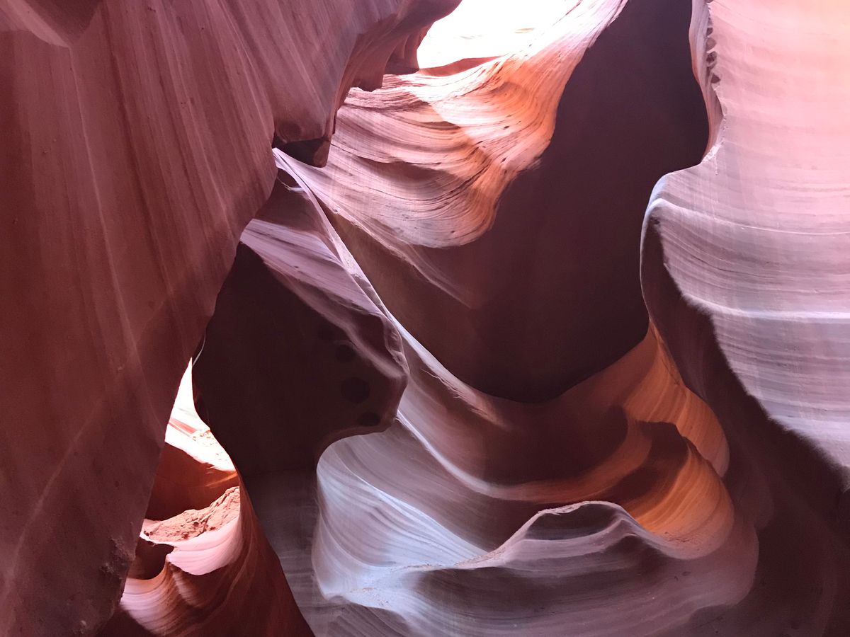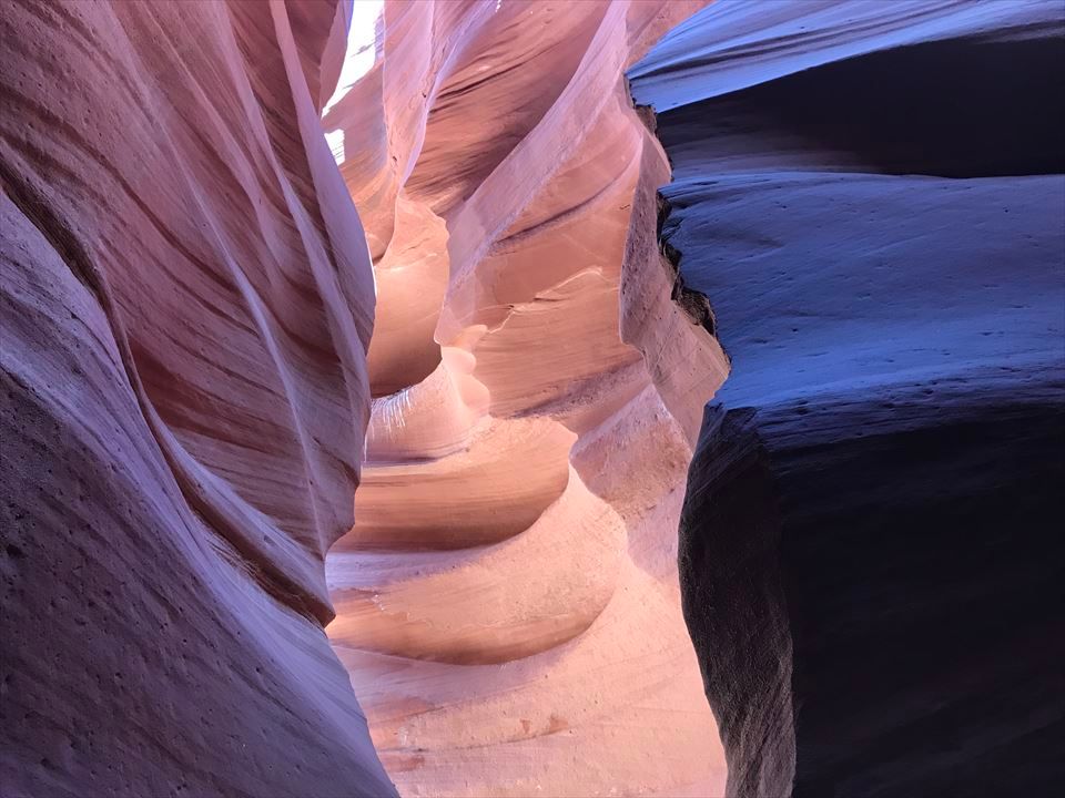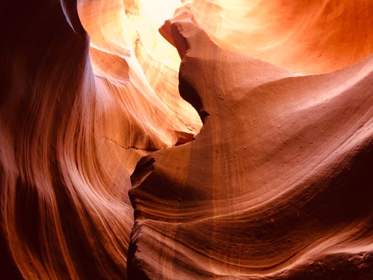 十分、朝日鑑賞を堪能した後、最後のロウアーアンテロープへ。到着後少し雨が降り始めたので心配しましたが、現地ガイドさんに連れられて出発。現地ガイドさんはカメラに詳しく、くもりでも綺麗に写真が撮れるように事前に調整してくれました。階段を下りていくとなんとも言えない自然が造り出す素晴らしい造形美にただただ感動。写真の撮り方もガイドさんが優しく教えてくれるので素晴らしい写真がたくさん撮れました。