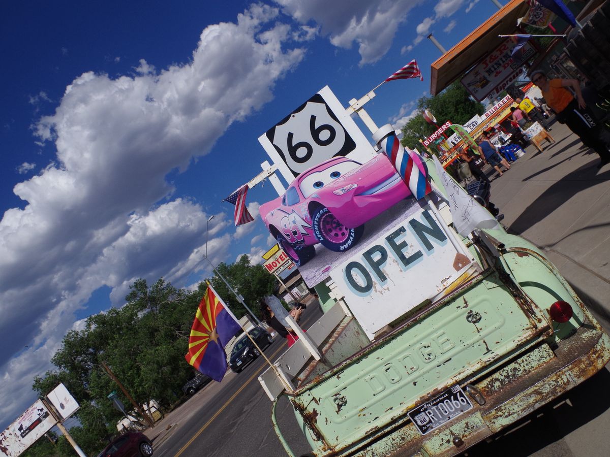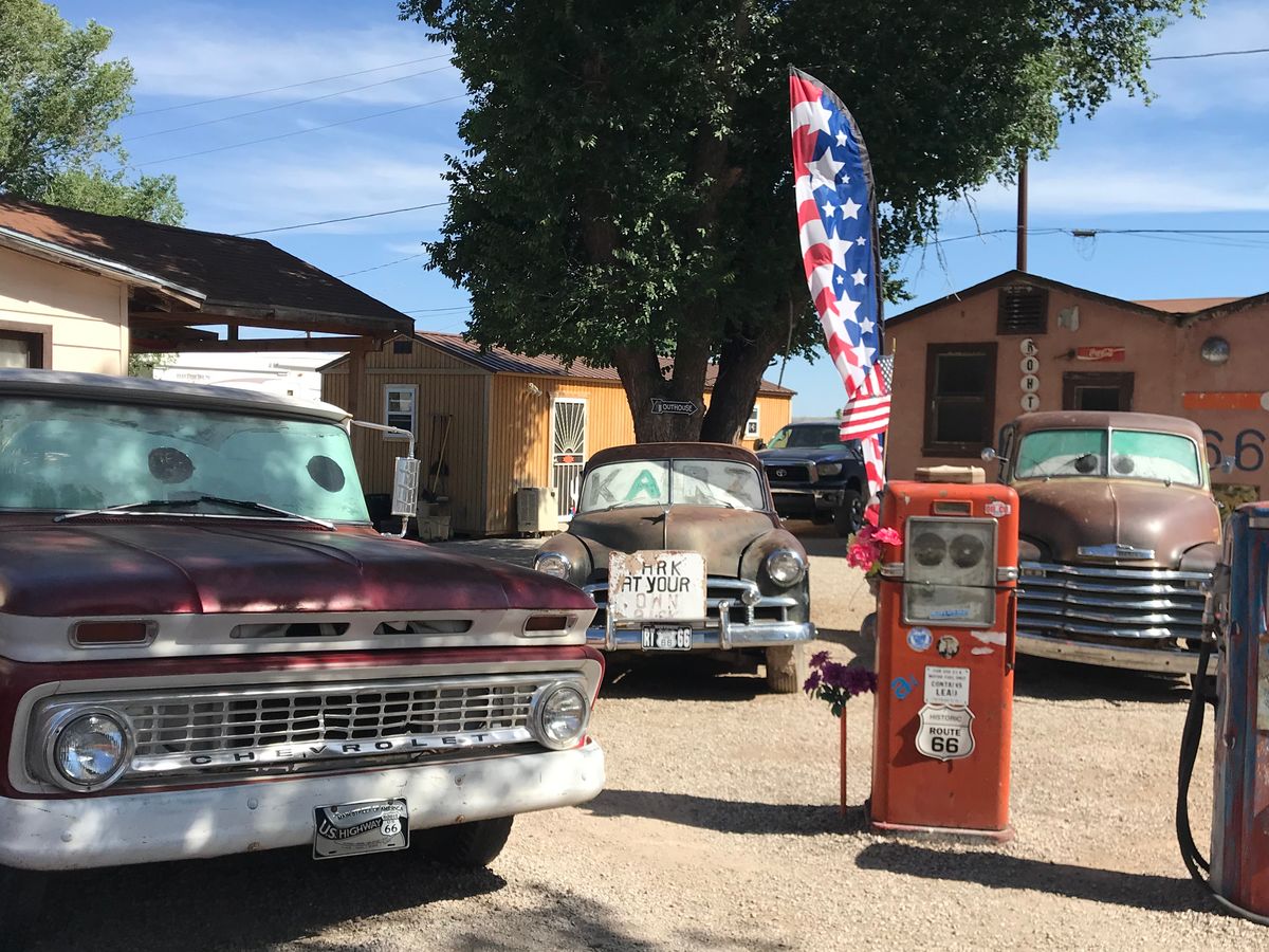人気のルート66セリグマンで休憩。オールドカーやショップには古き良きアメリカ感があって旅のテンションUPです。