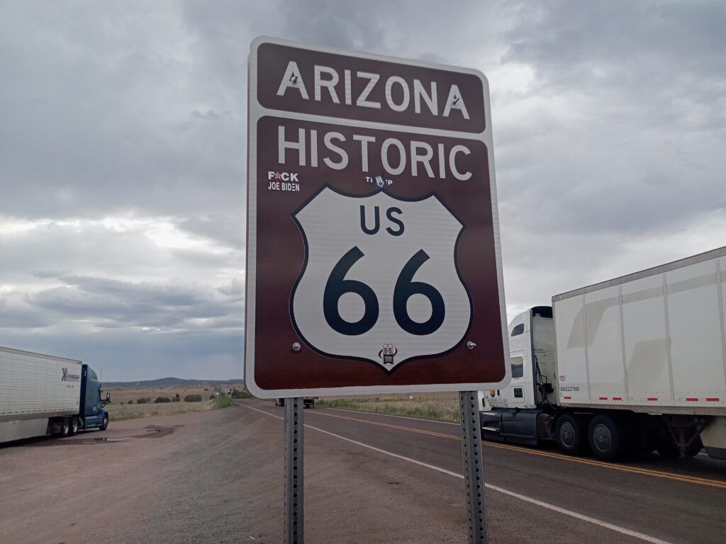 そして、グランドキャニオンを後にして、昔の交通の大動脈だったルート66へ。ところが、事故か何かあったのか大渋滞。撮影ポイントに着いたら、パッと写真を撮って移動することになりました。