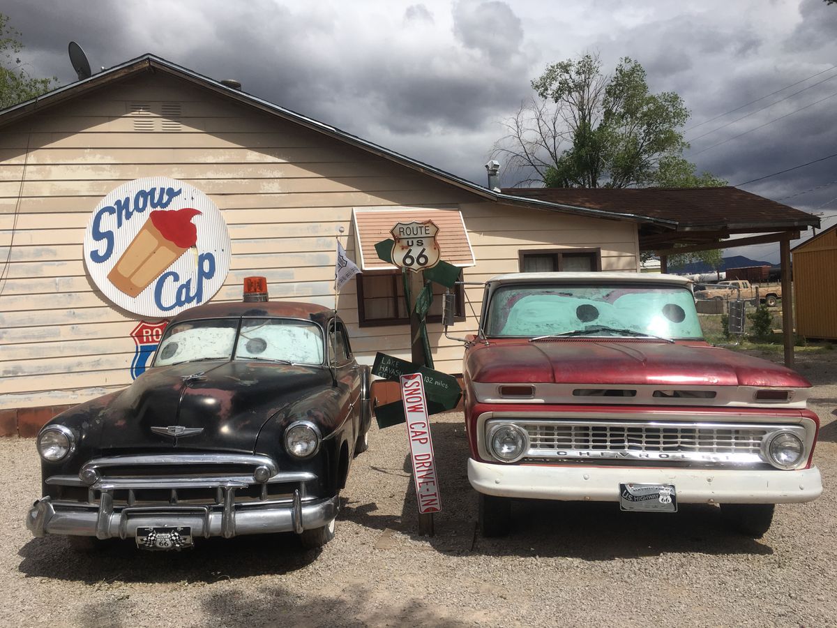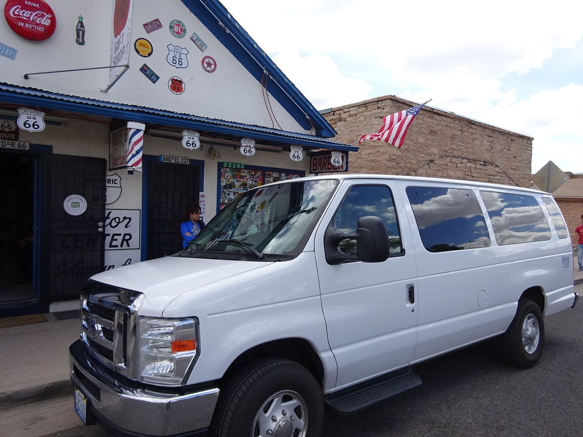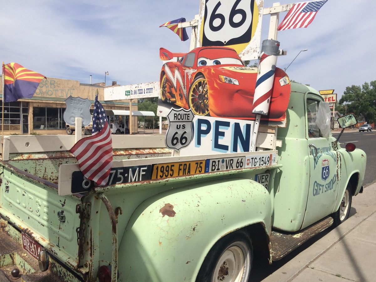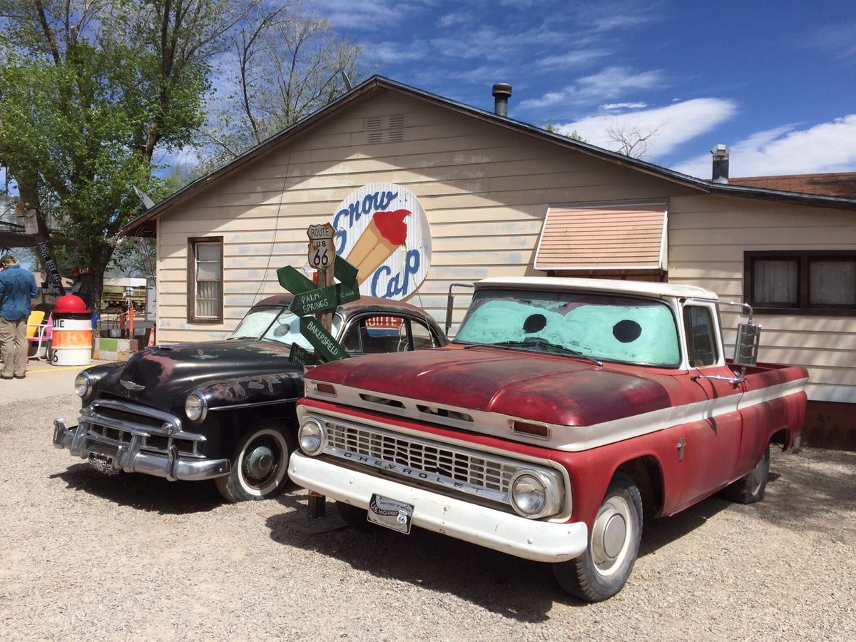 カーズ発祥の地でもあるこの町ではカーズのモデルとなった車たちと写真を撮ったり、ガイドさんオススメのハンバーガー屋さんで昼食を買ったりしました。名物のエンジェルおじさんに会えなかったのは残念でした。