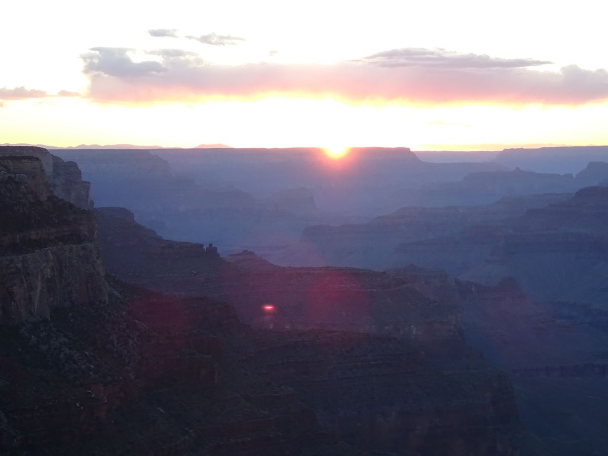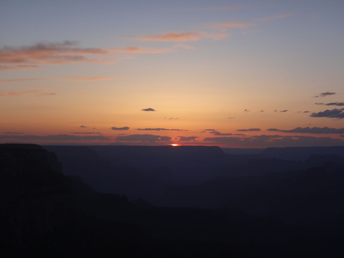 標高のあるグランドキャニオンは、雲の量などが刻々と変り、夕陽も天候にかかわらず見れないときもあります。