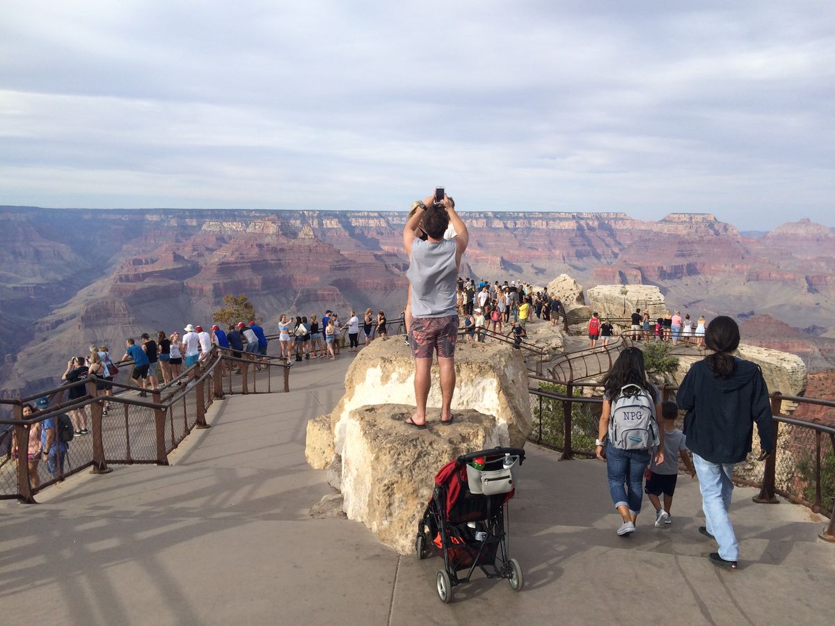 グランドキャニオンについてからはガイドさんのおすすめポイントがあるとのことで、周りの景色を見ず、足元だけ見てそのポイントまで着いていき、いきなり大絶景を見る!!本当にオススメポイントだけあって、すごい絶景。周りに観光客もいなくて本当に良かったです。