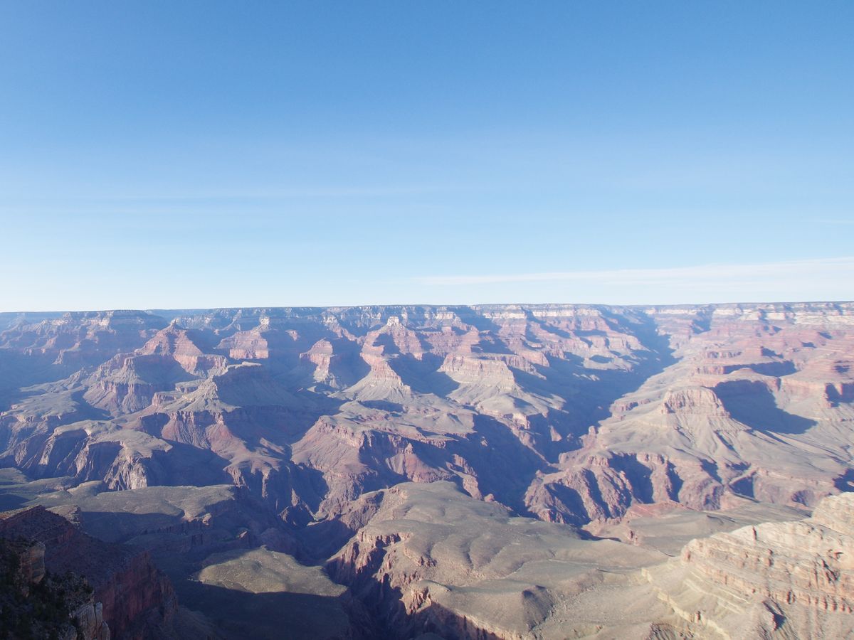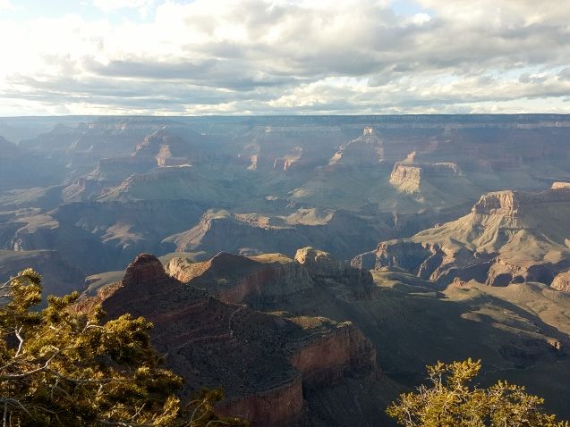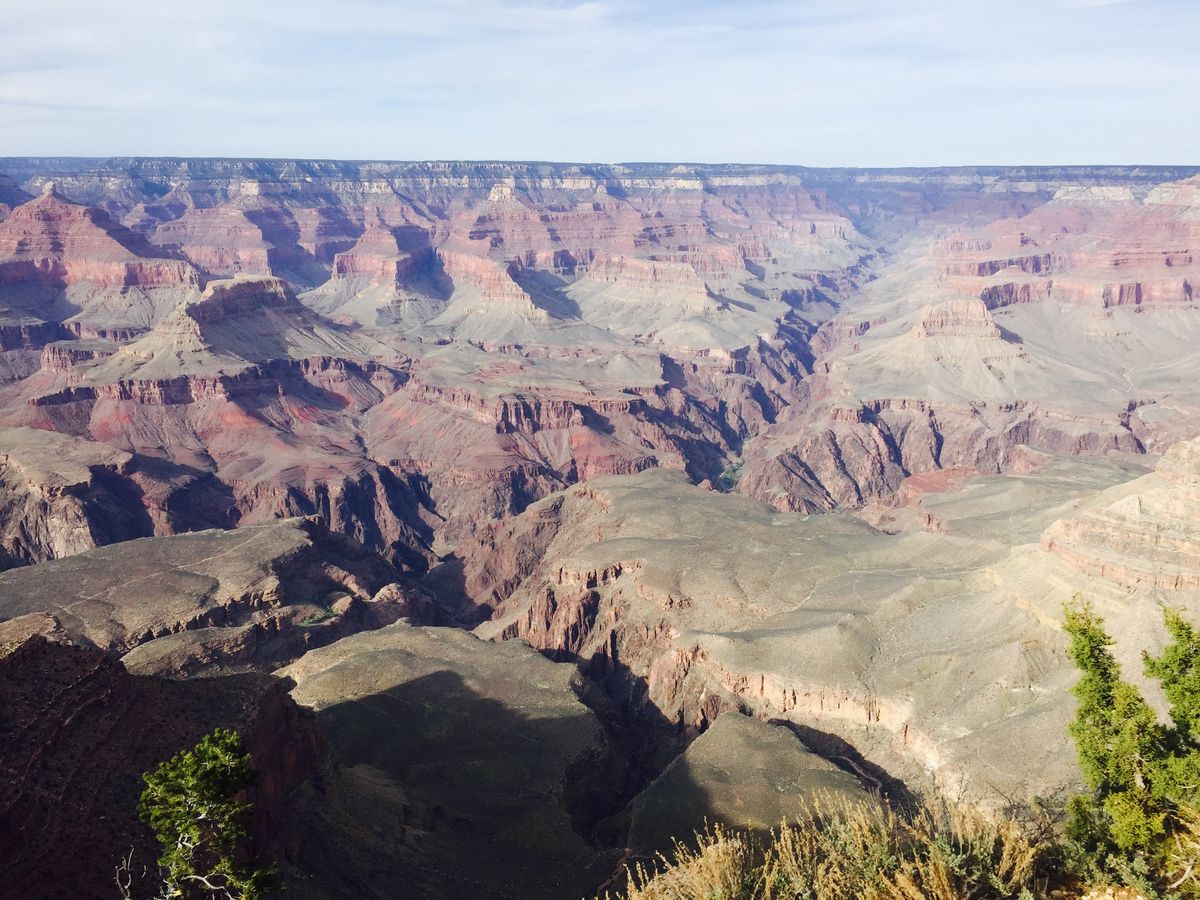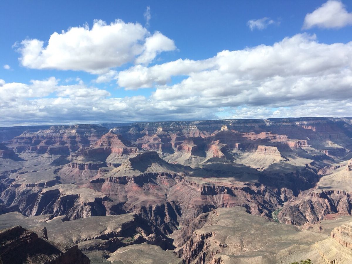 個人的には、夕陽も素敵ですが太陽がある時間の雲がある景色が好き。雲の影がグランドキャニオンの山々に写り雰囲気抜群でした。
