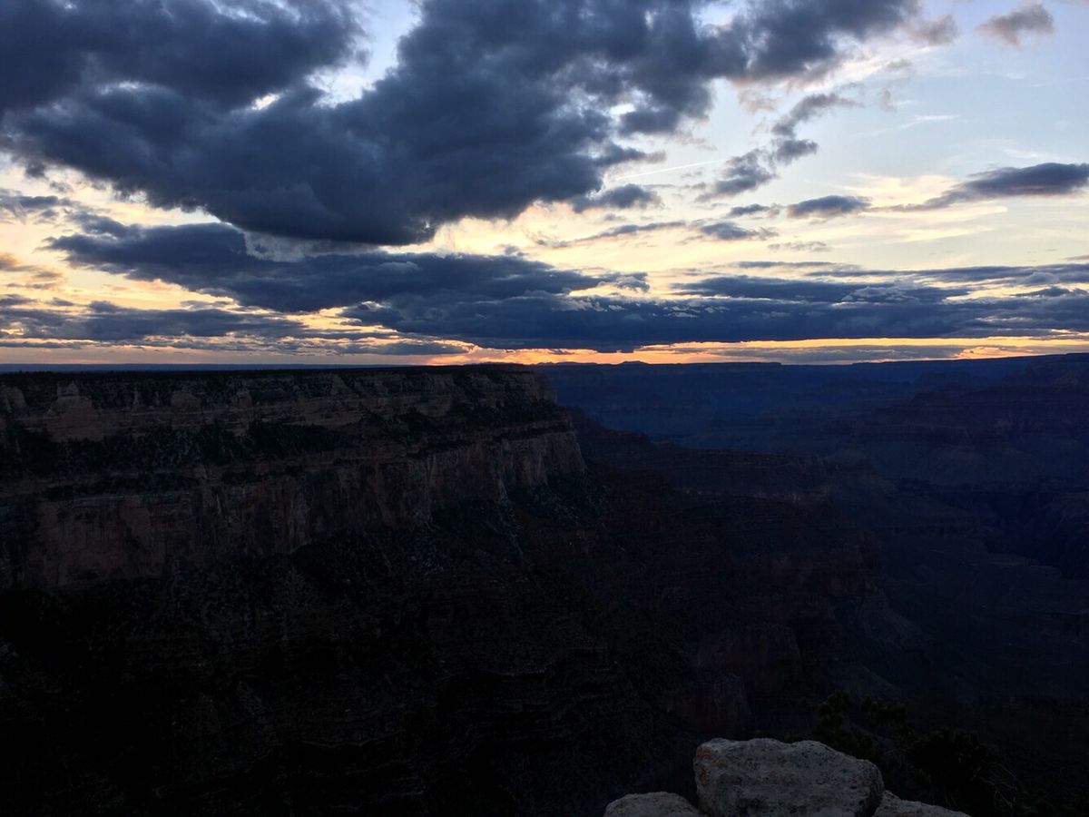 山の天気は変わりやすく予報もあてにならない、予報では天気が悪そうで心配でしたが、現地ではタイミングよく太陽も出てくれて夕陽も見ることができ色んな顔のグランドキャニオンを楽しむことができました。