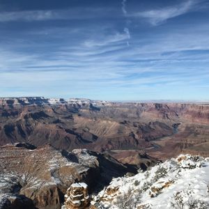 3つ目のグランドキャニオンには、13時過ぎに到着した。標高は3箇所で最も高いが、昼過ぎであるため、アンテロープキャニオンよりは暖かく過ごしやすかった。前日に雪が降っていたため、雪の積もったグランドキャニオンを見ることができた。雪が積もることはかなり珍しいことと説明があった。360度のパノラマは迫力があって良かった。
