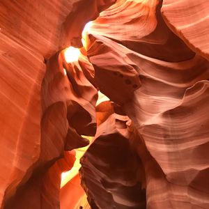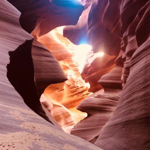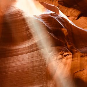 アッパー・アンテロープ・キャニオンは、アリゾナ州ペイジ近郊に位置し、ナバホ族の聖地としても知られています。このキャニオンは、長年にわたる風と水の浸食によって形成された美しい砂岩の地形が特徴で、特にその幻想的な光のビームで有名です。 キャニオンの上部が狭く、太陽光が差し込むと、内部に光の柱が現れ、光と影が織りなす美しいコントラストは、まるで自然が作り出したアートのようです。この光のビームは、太陽の動きによって出現するので、ビーム観賞を希望する方は入場時間が日々変動していますのでご注意ください。 また内部へのアクセスにはツアー参加が必須となり、こちらのツアーはナバホ族によって運営されています。ガイドの案内に従いながら、狭い通路を進み、砂岩の壁に刻まれた自然の模様を間近で観察することができます。自然の力が作り出したこの壮大な景観を通じて、地球の歴史とその神秘に触れることができます。