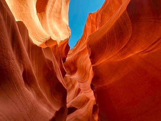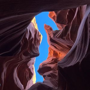 ロウワー・アンテロープ・キャニオンは、アリゾナ州ペイジ近郊に位置し、アッパー・アンテロープ・キャニオンと並んで人気の観光地です。このキャニオンは、長年の風と水の浸食によって形成された美しい砂岩の地形が特徴です。 ロウワー・アンテロープ・キャニオンは、アッパーに比べて少し冒険的な要素が含まれています。狭い通路や急な階段を通り抜ける必要があり、よりアクティブな探索を楽しむことができます。砂岩の壁は、自然の力によって彫刻されたような美しい模様を持ち、光の角度によって様々な色合いを見せます。 またアッパーほど混雑していないため、落ち着いてその美しさを堪能できるのも魅力の一つです。こちらもガイド付きツアーが必須となり、ガイドの案内に従いながら、キャニオンの内部を進み、自然が作り出した驚異的な景観を間近で堪能することができます。