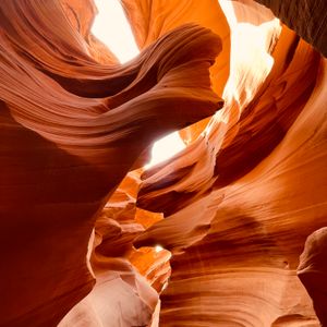 ロウワー・アンテロープ・キャニオンは、アリゾナ州ペイジ近郊に位置し、アッパー・アンテロープ・キャニオンと並んで人気の観光地です。このキャニオンは、長年の風と水の浸食によって形成された美しい砂岩の地形が特徴です。 ロウワー・アンテロープ・キャニオンは、アッパーに比べて少し冒険的な要素が含まれています。狭い通路や急な階段を通り抜ける必要があり、よりアクティブな探索を楽しむことができます。砂岩の壁は、自然の力によって彫刻されたような美しい模様を持ち、光の角度によって様々な色合いを見せます。 またアッパーほど混雑していないため、落ち着いてその美しさを堪能できるのも魅力の一つです。こちらもガイド付きツアーが必須となり、ガイドの案内に従いながら、キャニオンの内部を進み、自然が作り出した驚異的な景観を間近で堪能することができます。