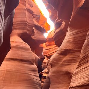 ロウワー・アンテロープ・キャニオンは、アリゾナ州ペイジ近郊に位置し、アッパー・アンテロープ・キャニオンと並んで人気の観光地です。このキャニオンは、長年の風と水の浸食によって形成された美しい砂岩の地形が特徴です。 ロウワー・アンテロープ・キャニオンは、アッパーに比べて少し冒険的な要素が含まれています。狭い通路や急な階段を通り抜ける必要があり、よりアクティブな探索を楽しむことができます。砂岩の壁は、自然の力によって彫刻されたような美しい模様を持ち、光の角度によって様々な色合いを見せます。 またアッパーほど混雑していないため、落ち着いてその美しさを堪能できるのも魅力の一つです。こちらもガイド付きツアーが必須となり、ガイドの案内に従いながら、キャニオンの内部を進み、自然が作り出した驚異的な景観を間近で堪能することができます。