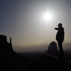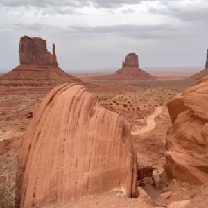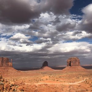モニュメントバレーもアンテロープも軽い砂嵐状態です。フードの付いたウインドブレーカーも是非!