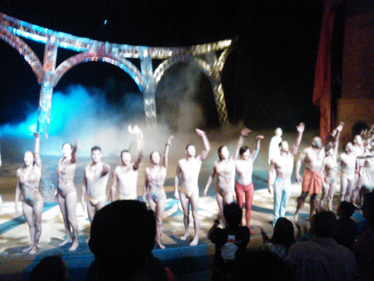 本当に素晴らしくて感動しました。あの場所でなくちゃ出来ないパフォーマンスですね。ただ開演時間をすぎてもうショーが始まっているのにゾロゾロと遅れて入ってくるお客さんが多くてびっくりしました。日本ではありえないですよね。
