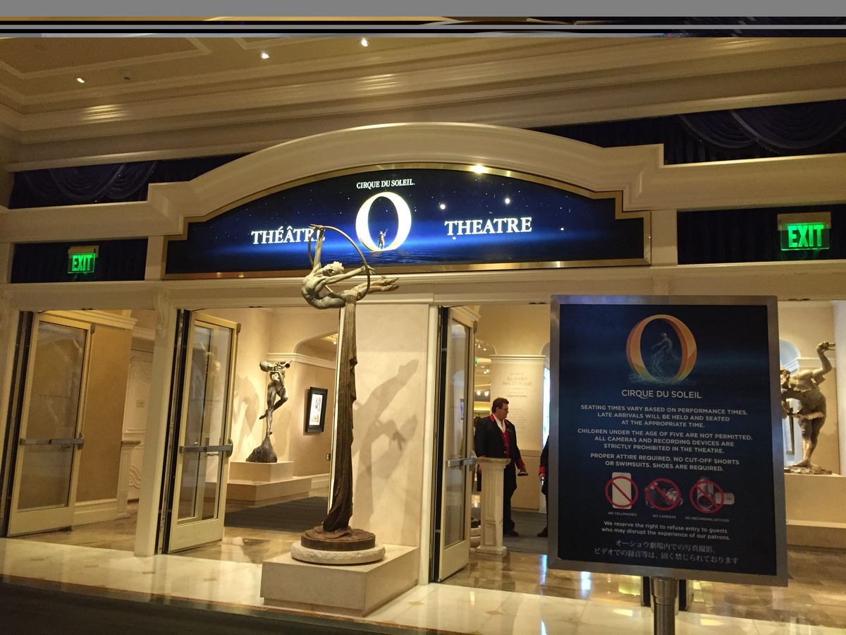 40歳になって初めてのラスベガス、サンフランシスコに3泊ヨセミテ観光等ハードスケジュールの中、ラスベガス移動日に「O」を予約しました。ラスベガスではグランドキャニオン観光もありこの日しか空いてる時間がなく有効活用したつもりでした。到着間もなくしてとりあえずバウチャーをチケットに交換しておこうと思い、私のホテルはベネチアンだったのでまずベラッジオまで移動し、「O」シアターチケット受付に向かいました。受付の人にバウチャーを見せてチケットの入手出来ると思いきやこのバウチャーはここではないから、このバウチャーのBellagio Ticket Office’s Invited Guest Lineに行ってと指示されてしまいました。受付の人に聞いても知らないと言われるし、ベラッジオの中はとてつもなく広く、探した挙げ句見つからず最後はベルデスクの人に聞きました所、とても親切な方でコンシェルジュデスクに聞いて頂きなんとそこでチケットを発行してもらいました。結局Bellagio Ticket Office’s Invited Guest Lineがどこだったのかは不明です。