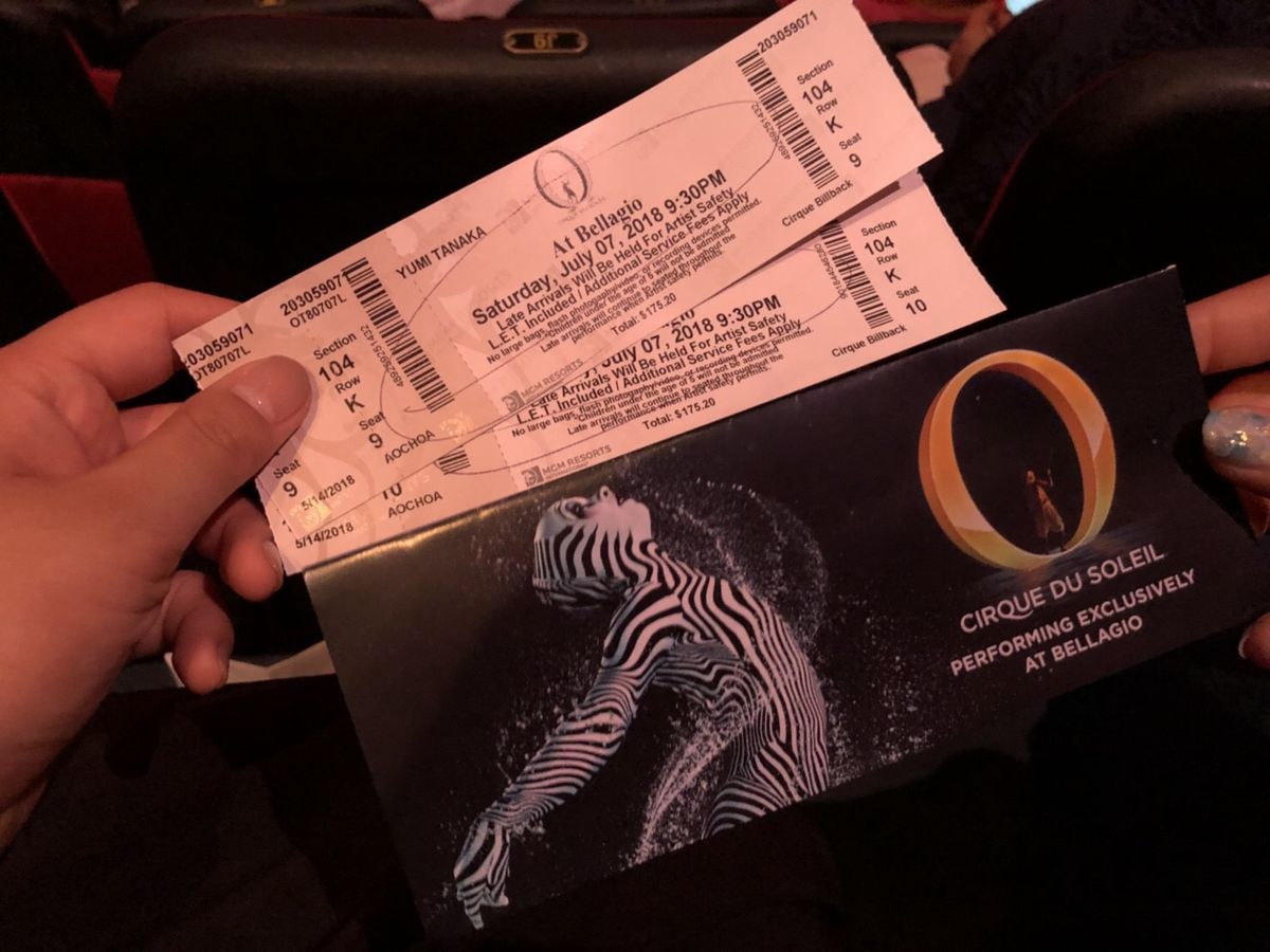 家族5人のラスベガス旅行で、カテゴリーBの席でしたが、1階中央やや右側の見やすい席を横並びで取ることができました。以前シルク・ドゥ・ソレイユの大阪公演を見たことがありましたが、常設舞台での迫力は比べものにならないくらいすごかったです。ラスベガスに行かれたときは、是非見て頂きたいショーのひとつだと思います。