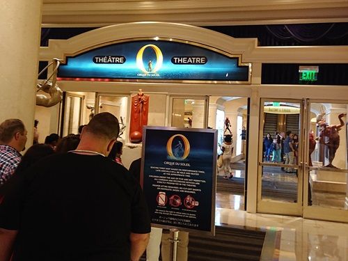 Oシアターはベラッジオホテル内にありますが、ホテル入り口から受付まで距離があるので注意です。(カジノを突っ切る必要がありますが、案内表示に従えばつきます)