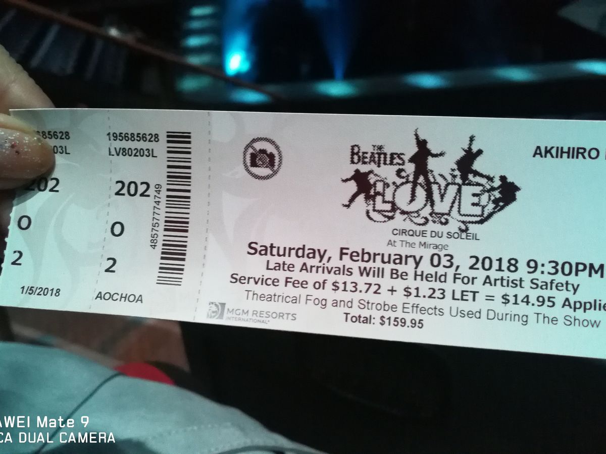 2016年にCategory B でお願いして感動したので 今月もお願いしました。ベガスでシルクドソレイユ ほかにも四つほど行きましたがマイケルジャクソンよりこちらのほうが一番お気に入りです。何回見ても素晴らしいです。