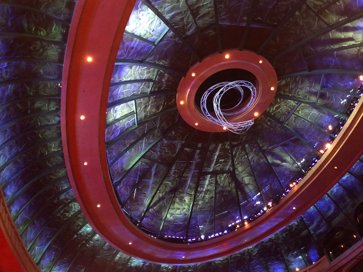 水の中で息を凝らして動いていらっしゃる方々は、いつの間にか水面に現れてパフォーマンスしてくださるし、天井からは ハラハラドキドキする空中でのアクロバティックな技の連発ですので、ただただビックリしてしまいました。そして、最後にあんなにも高い所から水中に飛び込んでしまわれたときには、キャーキャーと叫んでしまいました。