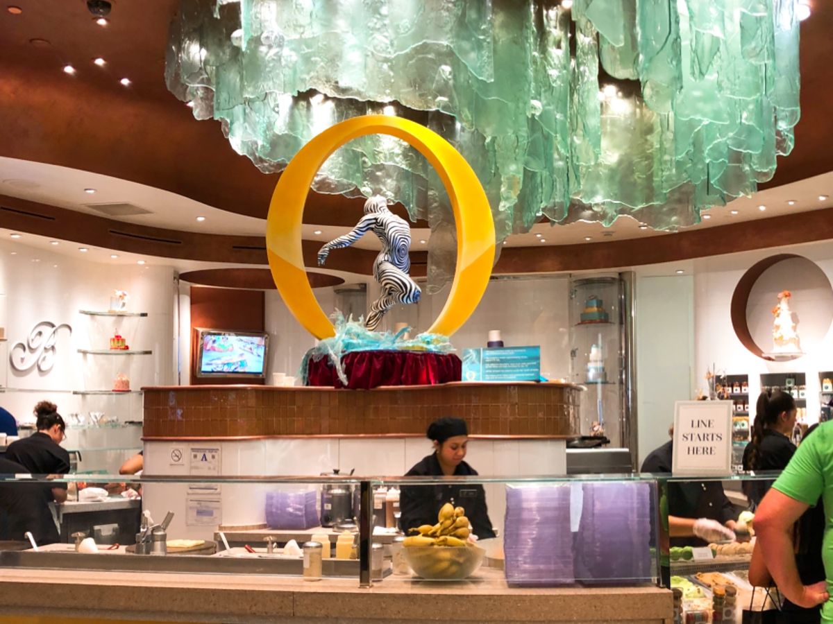 ラスベガスに来たからには一度はシルク・ドゥ・ソレイユ オーを見なければと思い今回日本で予約していきました。料金はかなり高いですがそれなりに価値はあると思います。カテゴリーAでステージの近くで見られたので良かったです。観劇はあまり得意なほうではないですが、スピード感もあり寸劇もあり90分間最後まで飽きずに見れました。
