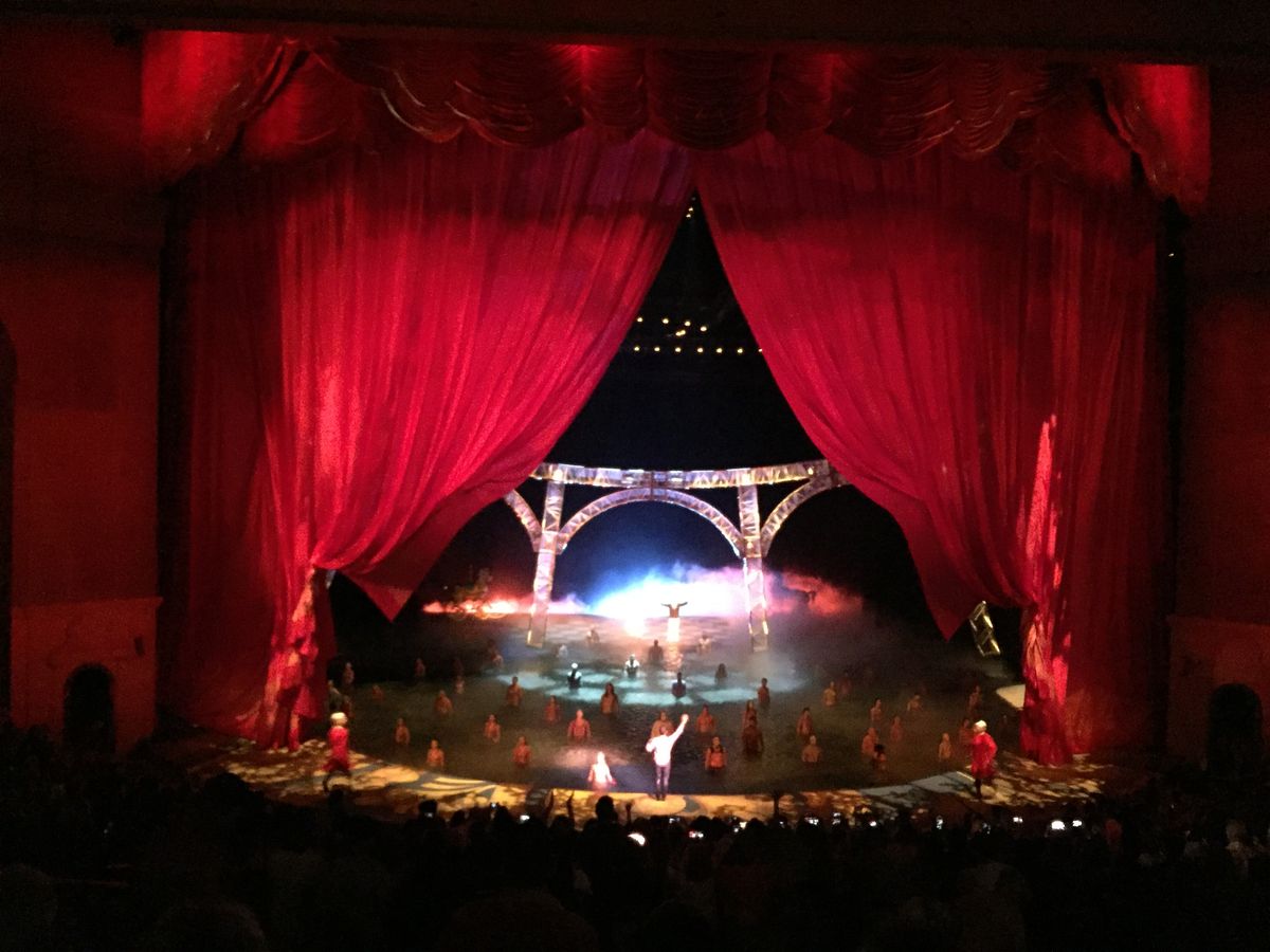 翌日の予定が急に空いてしまい、困っていたらこちらのサイトを発見!以前から興味がありましたが、チケットの料金にビビリつつポチっと。娘と二人、まず劇場のスケールに感動して、席も前列2列目!役者の表情、躍動感などは前列ならでは、でした。ストーリーもあって、英語の出来ない私たちでも楽しめます。そして舞台装置は圧巻です。さすがラスベガス!開演時にはほぼ満席だったと思います。チケット取れて本当によかったです。