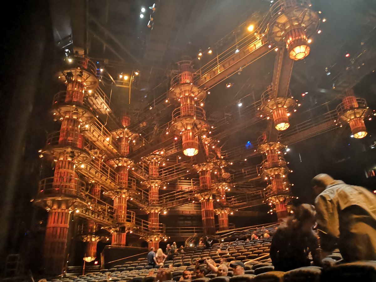 曜日限定で昼間に無料のバックステージツアーがありそれにも参加しました。ガイドブックによって開催時間が違っていたので確認したほうが良いかもです。内容はすべて英語の解説で会場の座席に座って動く舞台装置などを見せてもらいながら説明を聞くもので舞台裏に行くものではありませんでした。こんな仕掛けあるのかとか、ネタバレ的な部分はありますが事前事後どちらで参加がいいかはそれぞれで・・・機会があれば無料ですし参加すると1.5倍楽しめます。